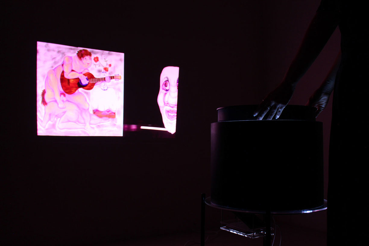 Through this installation, I want to let people feel like they’re prying into some secrets that no one ever knows. Thus, there are two ways to watch the installation. First one is to watch the images that “Exist” through the gap; the other one is to watch the “virtual” images after projecting by touching and rotating the installation. To me, both of them make me feel like peeking.